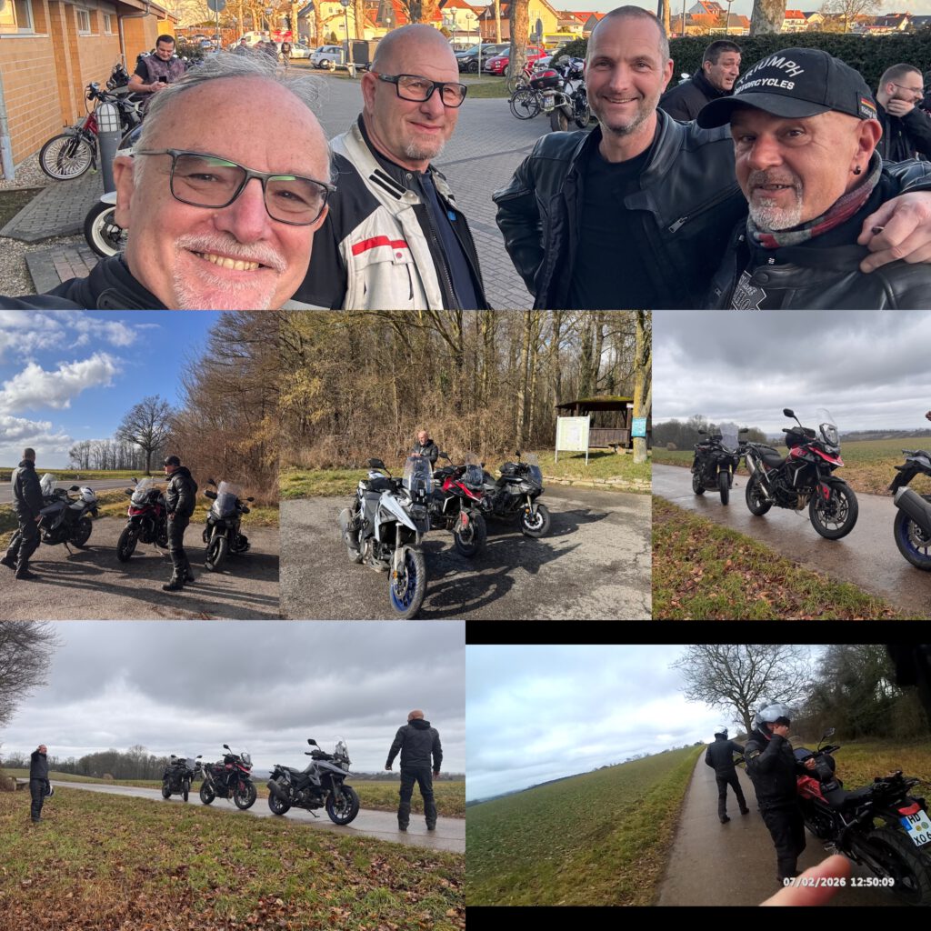 Um 12 ging es ab unserem Treffpunkt an der ESSO in Walldorf los. Erstmal mit drei wackeren Bikern, die ihre Nasen dann mal in den Wind streckten und mit verhältnismäßig gutem Motorradwetter belohnt wurden. So ging es dann kreuz und quer durch den Kraichgau. Peter hatte wieder mal schöne „Übungssträßchen“ herausgesucht.