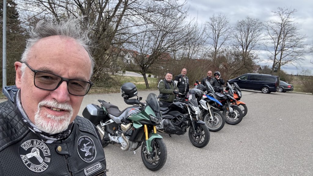 Bei unserem Treasurer Wolfgang zuhause, gab es zum Schluss noch einen Kaffee. Schlussbilanz: ca. 250 km, bis auf 15 Min am Anfang komplett trocken geblieben, eine gute Location für den Sommer entdeckt, wieder neue Strecken auf der Calimotomap – es geht wieder looooos !!!